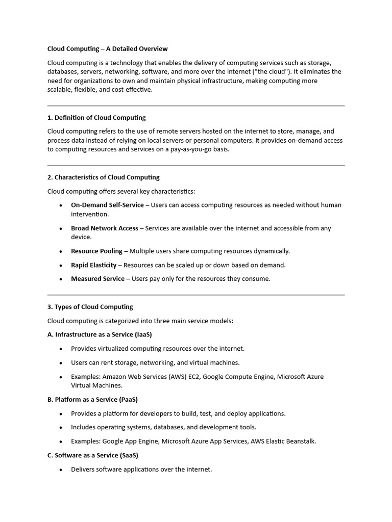 • Cost Efficiency – Pay only for what you use; reduces hardware costs.