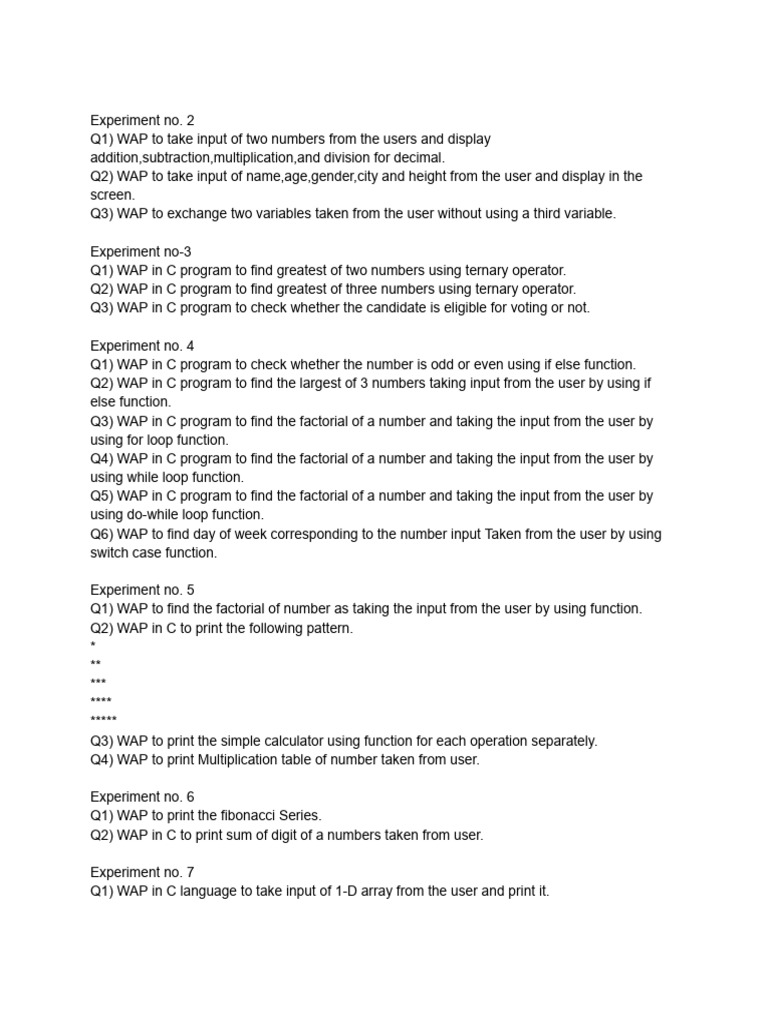 Q1) WAP in C language to take input of 1-D array from the user and print it.