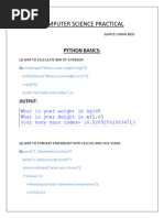5 WAP to calculate BMI of a person after inputting its weight in kgs and height in meters