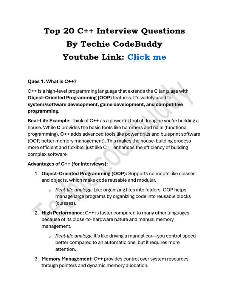 Real-Life Example: Think of C++ as a powerful toolkit. Imagine you’re building a