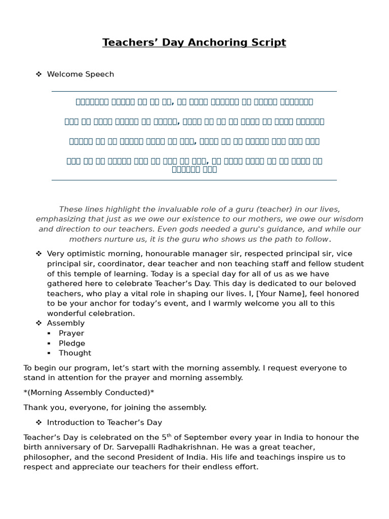 teachers, who play a vital role in shaping our lives. I, [Your Name], feel honored