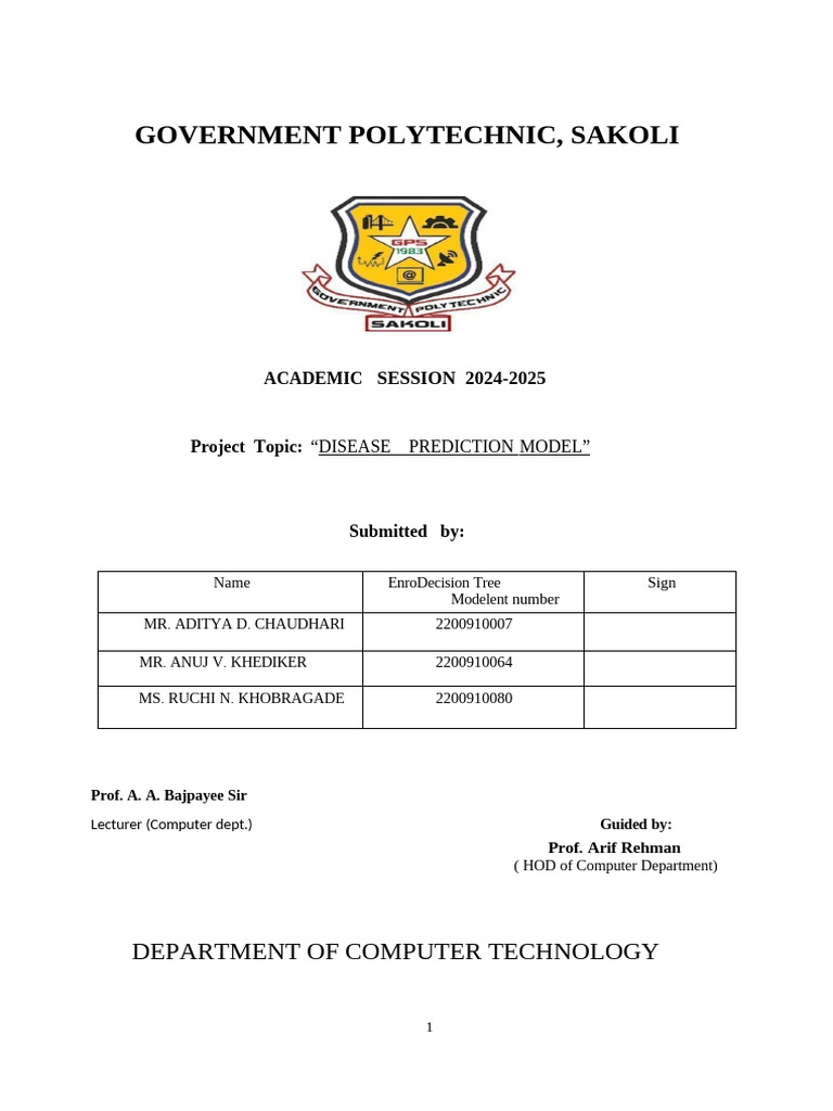 This Disease Prediction system can be used for urgent guidance on their illness according to the