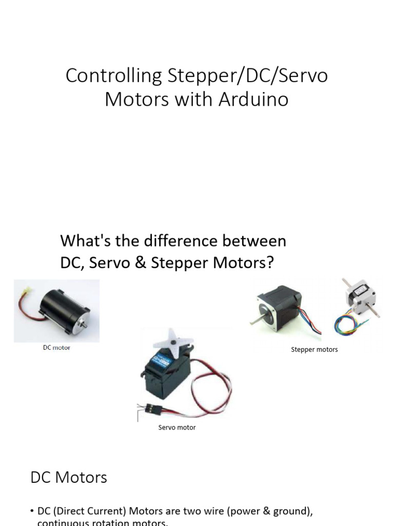• DC Motors: Fast, continuous rotation motors – Used for anything that