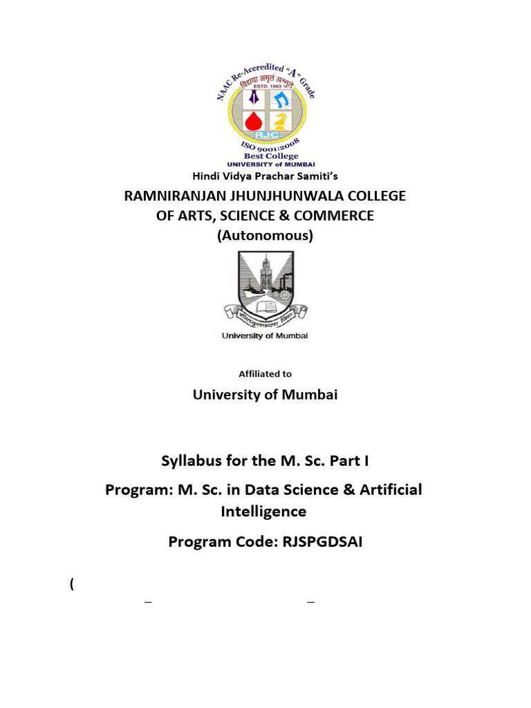 Hindi Vidya Prachar Samiti’s, Ramniranjan Jhunjhunwala College of Arts, Science & Commerce (Autonomous) M.Sc.