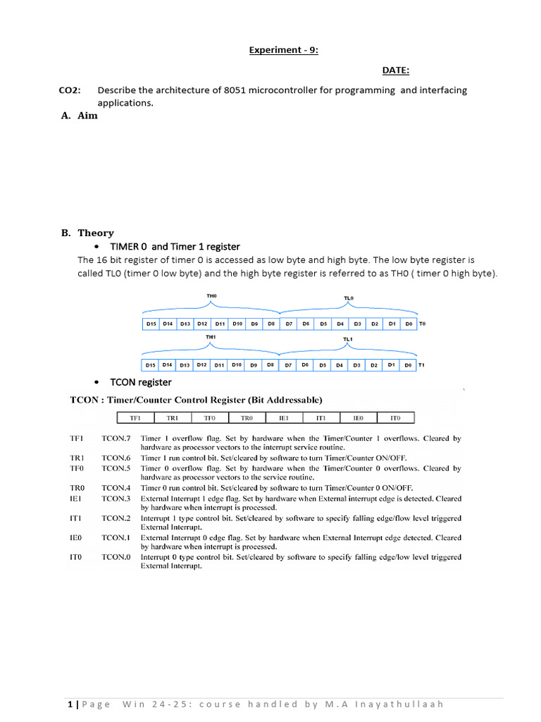 called TL0 (timer 0 low byte) and the high byte register is referred to as TH0 ( timer 0 high byte).