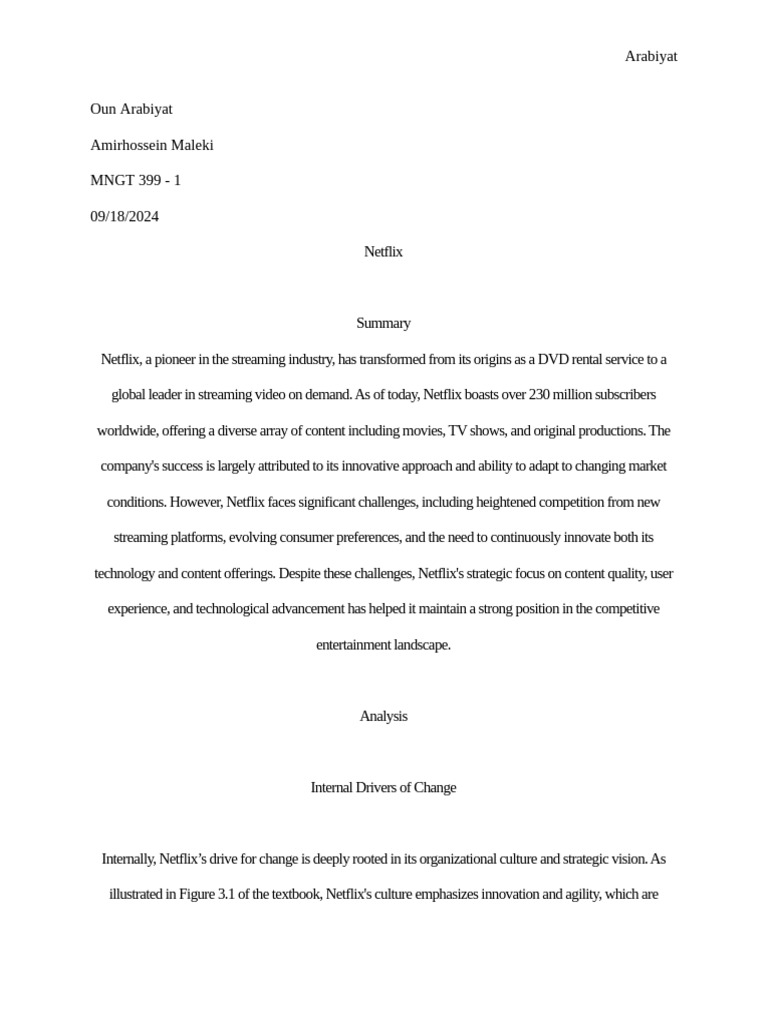 Externally, Netflix faces several significant environmental factors that drive change. According to Figure