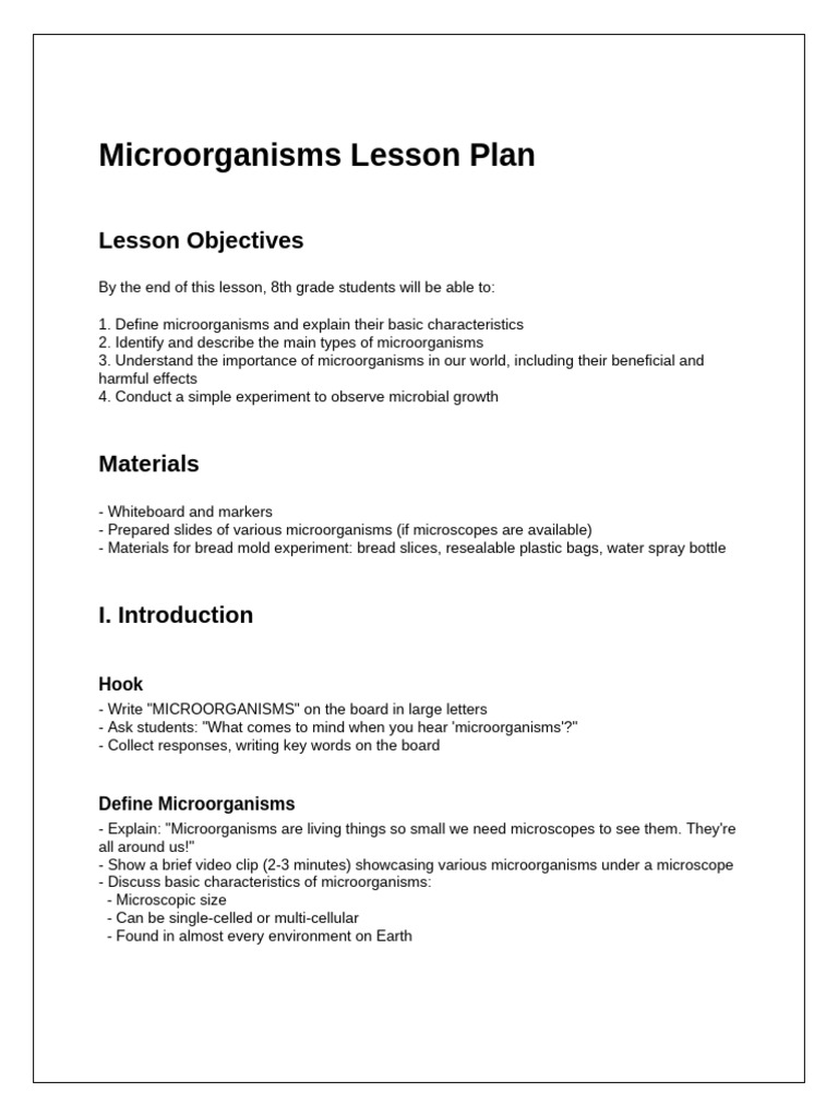 - Show a brief video clip (2-3 minutes) showcasing various microorganisms under a microscope
