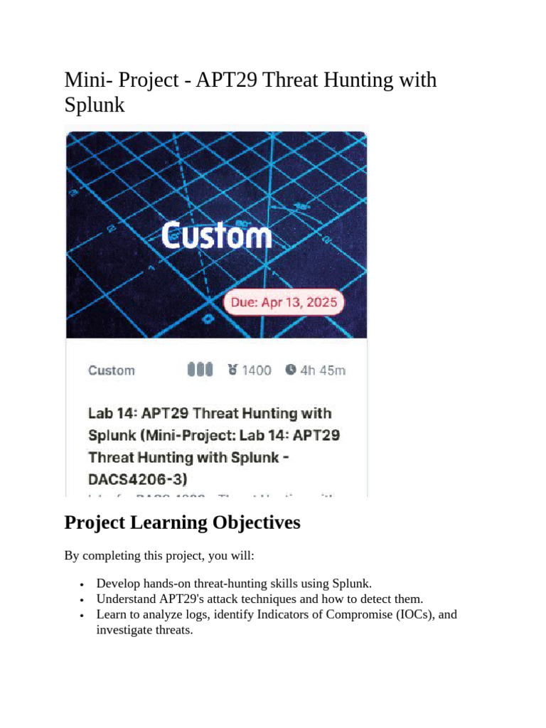 In this project, you will conduct threat hunting on APT29 using Splunk through