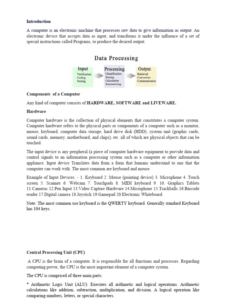 Any kind of computer consists of HARDWARE, SOFTWARE and LIVEWARE.