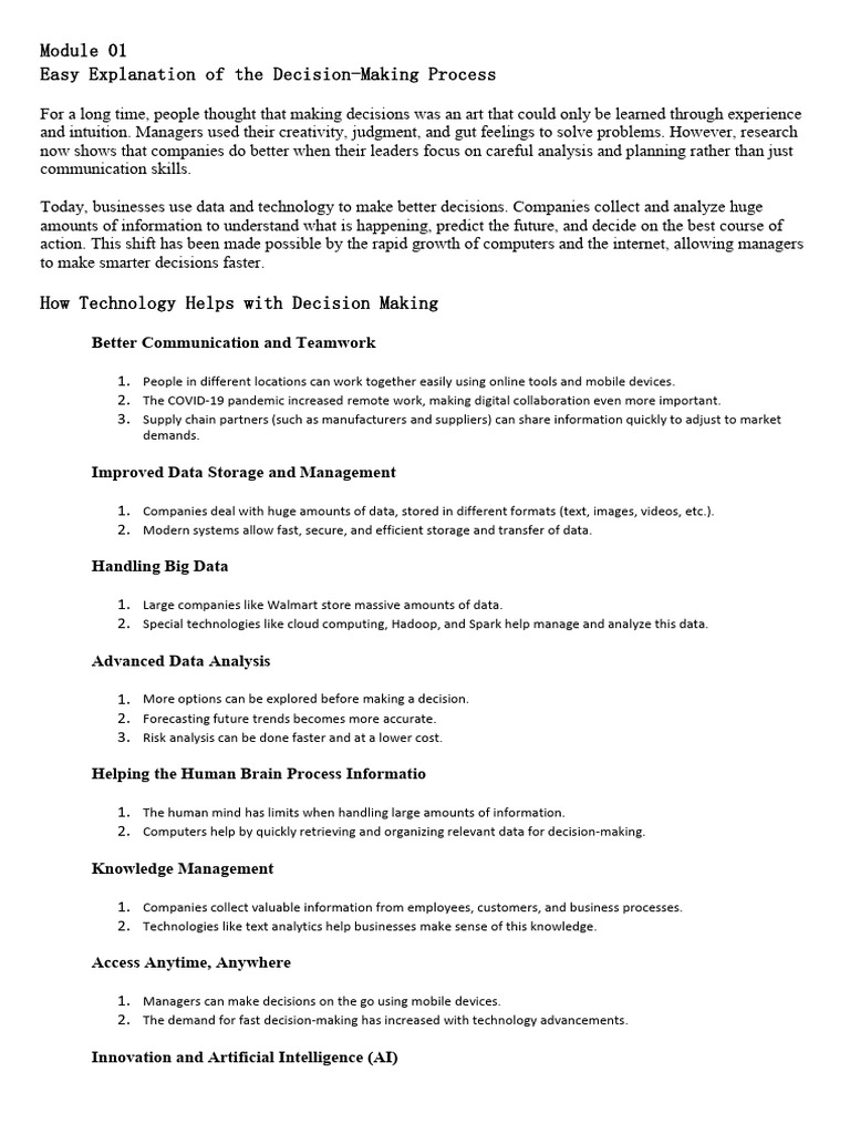 Overall, modern decision-making relies heavily on data, analytics, and AI to improve efficiency and accuracy.