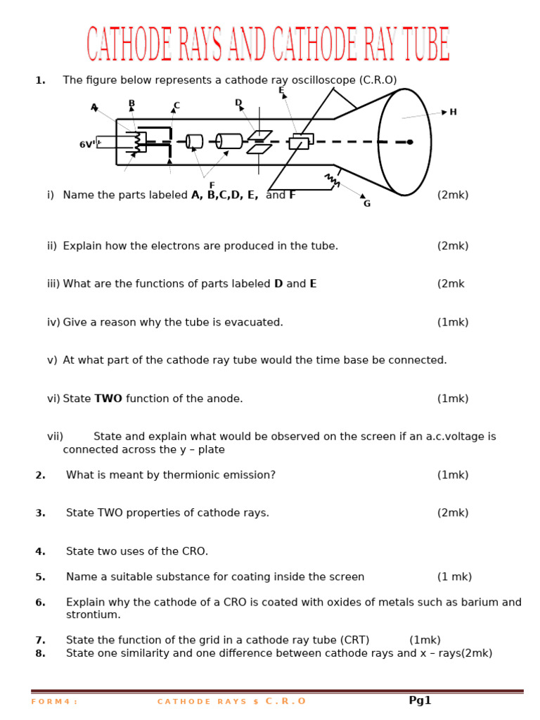 FORM4 : CATHODE RAYS $ C.R.O Pg1