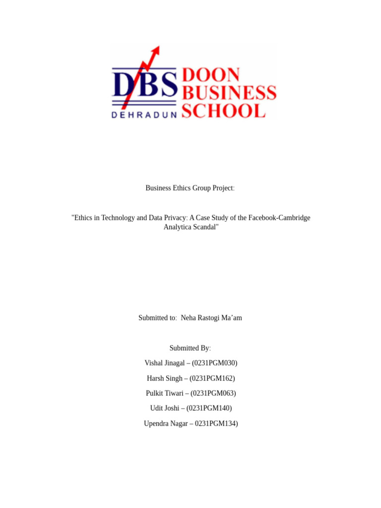 "Ethics in Technology and Data Privacy: A Case Study of the Facebook-Cambridge
