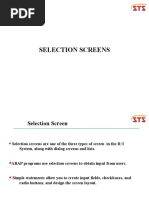 This CALL SUBSCREEN statement is necessary for transport of values between screen and program. Note: All validations of the selection screen fields e.g. the s_matnr field created above should be done in selection screen events like AT SELECTION-SCREEN etc and not in PAI. These selection screen validations etc should be done in the top include only. Method 2:a) Create 2 separate fields in your screen layout one for the low value and one for the high value. Insert an icon beside the high value which will call the multiple selections popup screen on user command. Use function module COMPLEX_SELECTIONS_DIALOG to achieve this. continued struc_tab_and_field-fieldname = con_cust. KUNNR struc_tab_and_field-tablename = con_kna1. KNA1. CALL FUNCTION COMPLEX_SELECTIONS_DIALOG EXPORTING* TITLE = text = g_titl1 Customers tab_and_field = struc_tab_and_field TABLES RANGE = rng_kunnr EXCEPTIONS NO_RANGE_TAB = 1 CANCELLED = 2 INTERNAL_ERROR = 3 INVALID_FIELDNAME = 4 OTHERS = 5. IF NOT rng_kunnr[] IS INITIAL. * Read the very first entry of the range table and pass it to * dynpro screen field *READ TABLE rng_kunnr INDEX 1. IF sy-subrc = 0. g_cust = rng_kunnr-low. ENDIF. ENDIF. You can use the return table rng_kunnr to populate your own internal range table with the values entered by the user. Basically here you are just simulating the work of a select-options parameter by module pool screen elements. 30.how we can retrive data using secondary index.explain with simple example Ans: First create secondary indexes on required fields of a particular database table.