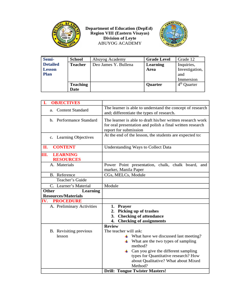 Detailed Teacher Deo James Y. Bullena Learning Inquiries,