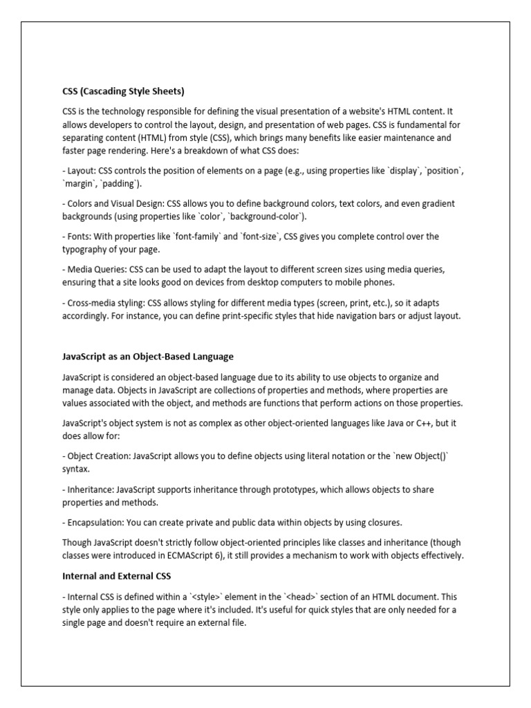 - Cross-media styling: CSS allows styling for different media types (screen, print, etc.), so it adapts