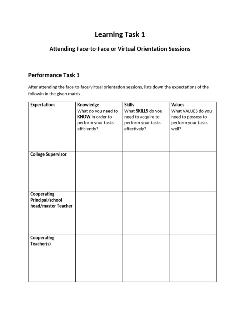 After attending the face-to-face/virtual orientation sessions, lists down the expectations of the