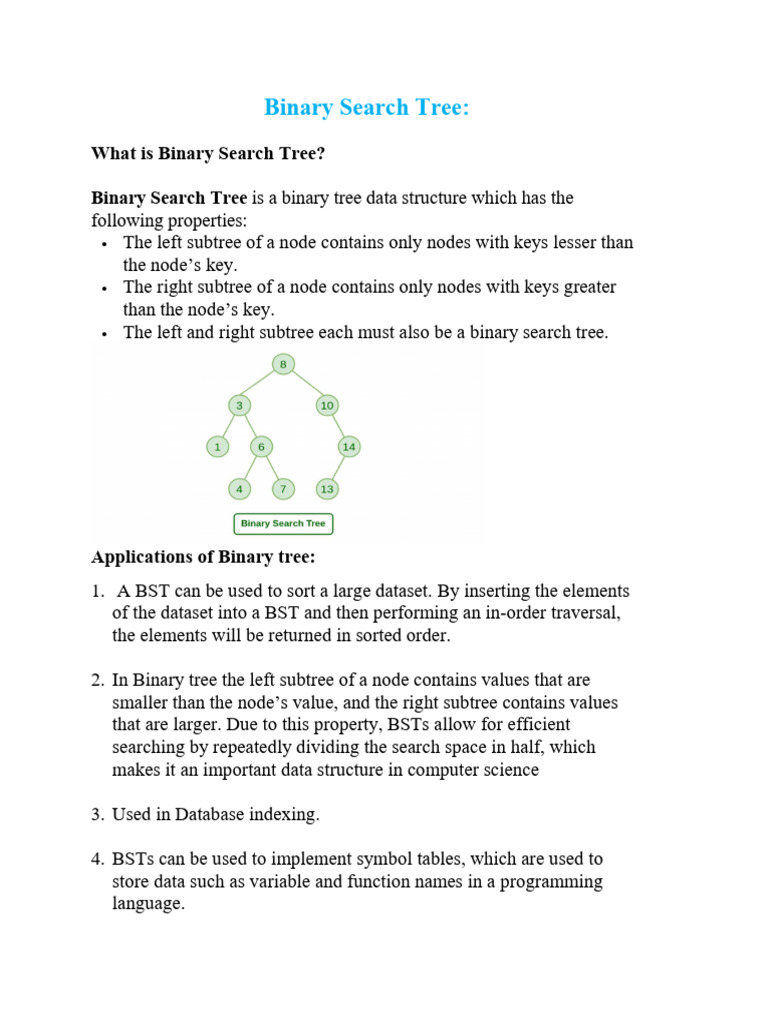 1. A BST can be used to sort a large dataset. By inserting the elements