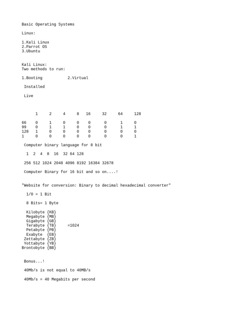 Computer Binary for 16 bit and so on....!