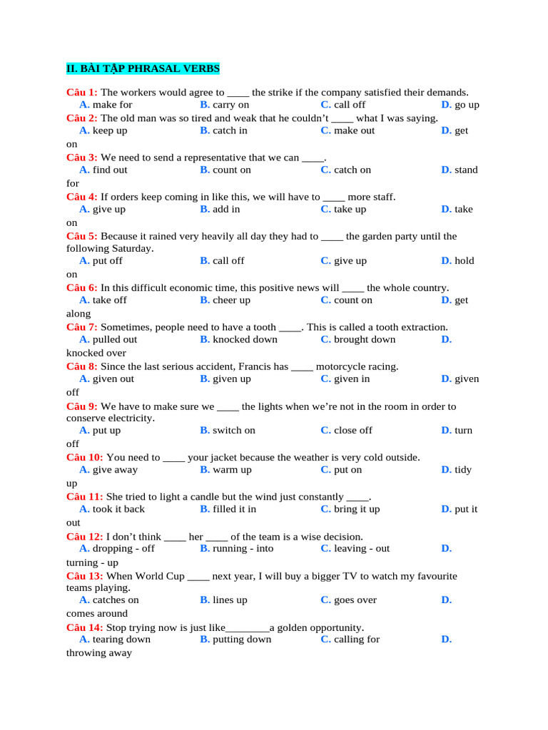 Câu 1: The workers would agree to ____ the strike if the company satisfied their demands.