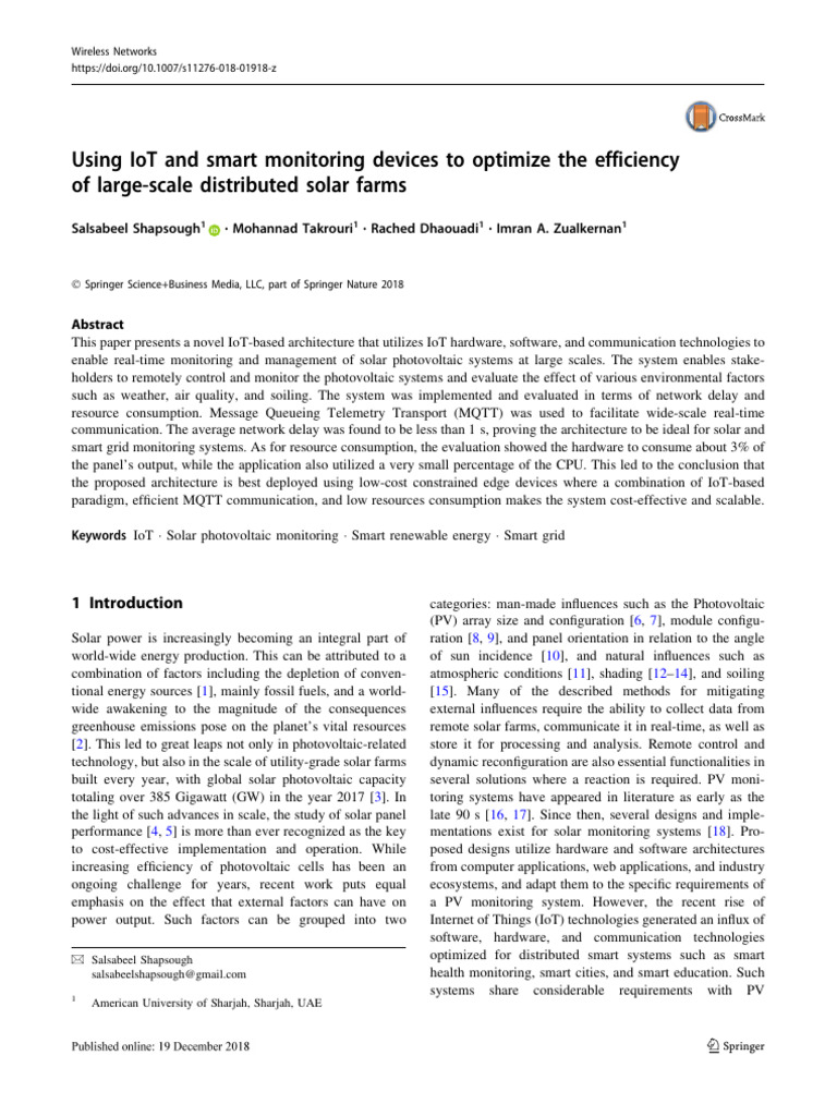 Keywords IoT Solar photovoltaic monitoring Smart renewable energy Smart grid