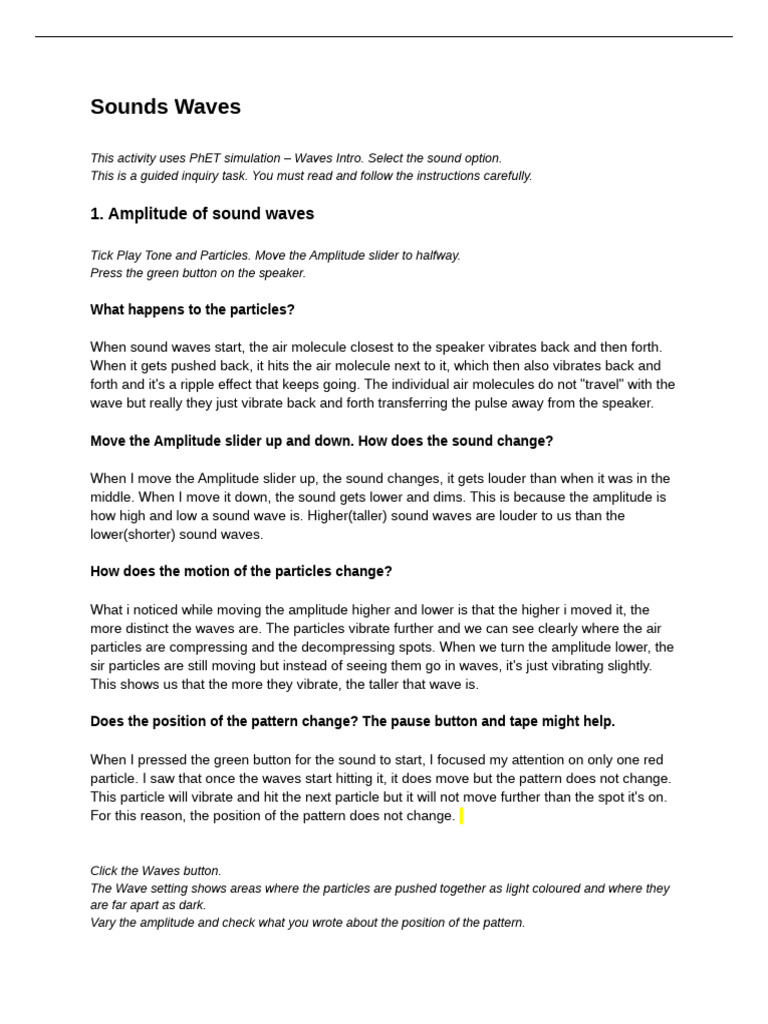 This activity uses PhET simulation – Waves Intro. Select the sound option.