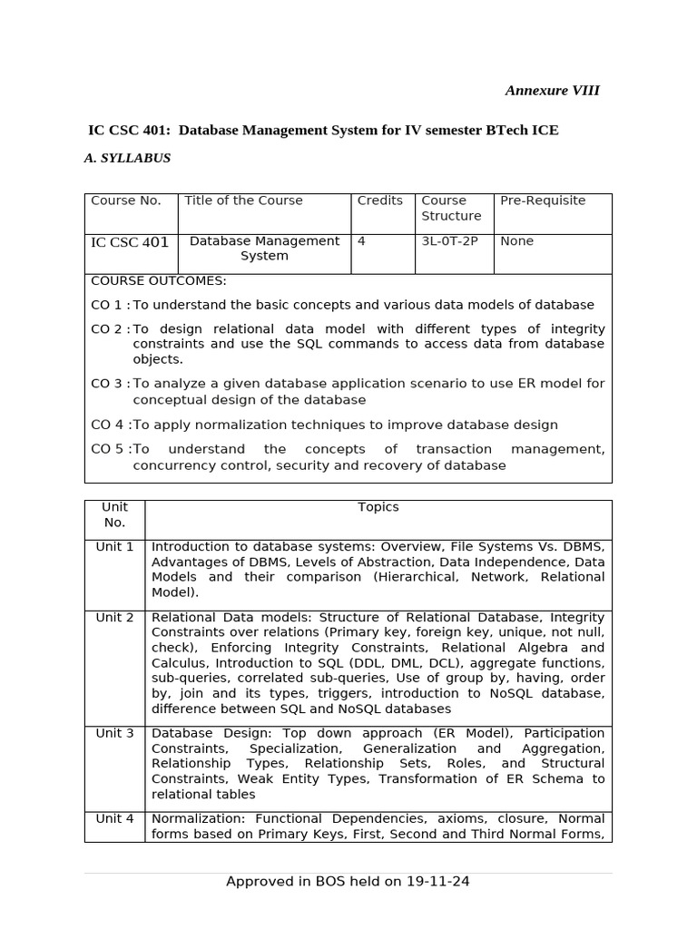 IC CSC 401: Database Management System for IV semester BTech ICE