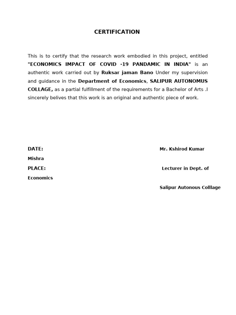 "ECONOMICS IMPACT OF COVID -19 PANDAMIC IN INDIA" is an