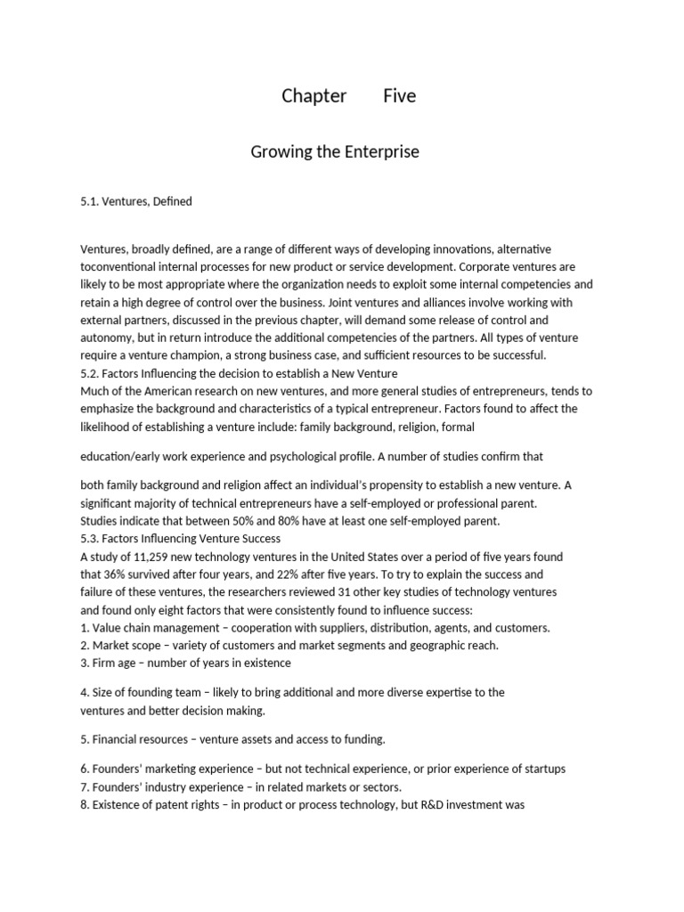 Generally, new venture growth is a consequence of the interaction of internal factors, such athe