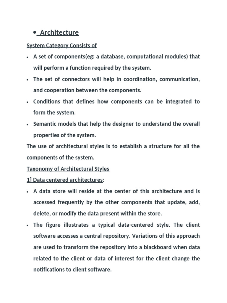 The use of architectural styles is to establish a structure for all the