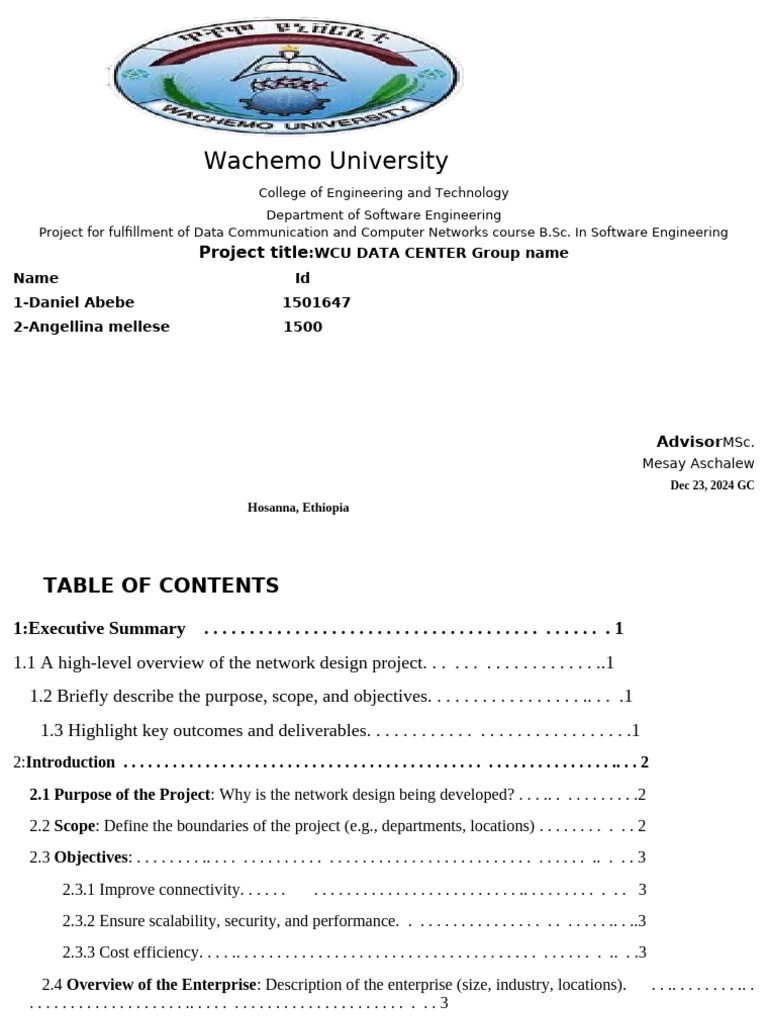 This document outlines the network design project for WCU University, aiming to create a robust,