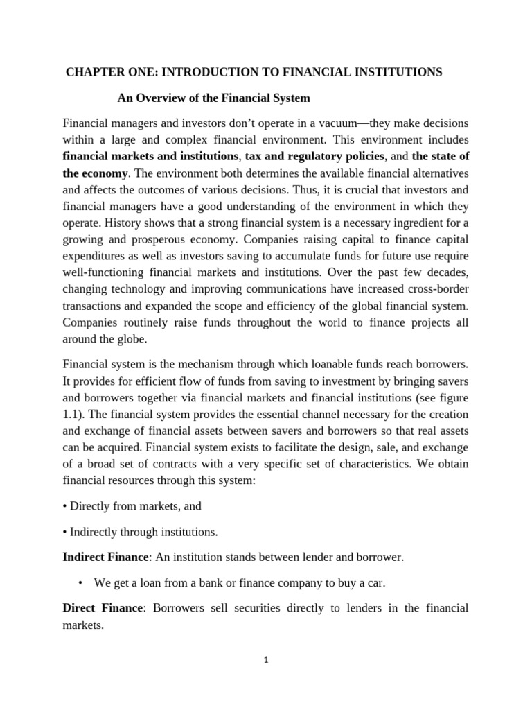 CHAPTER ONE: INTRODUCTION TO FINANCIAL INSTITUTIONS