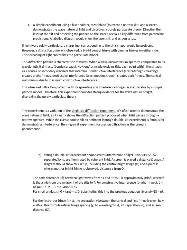 predictions. A labelled diagram would show the laser, slit, and screen setup.