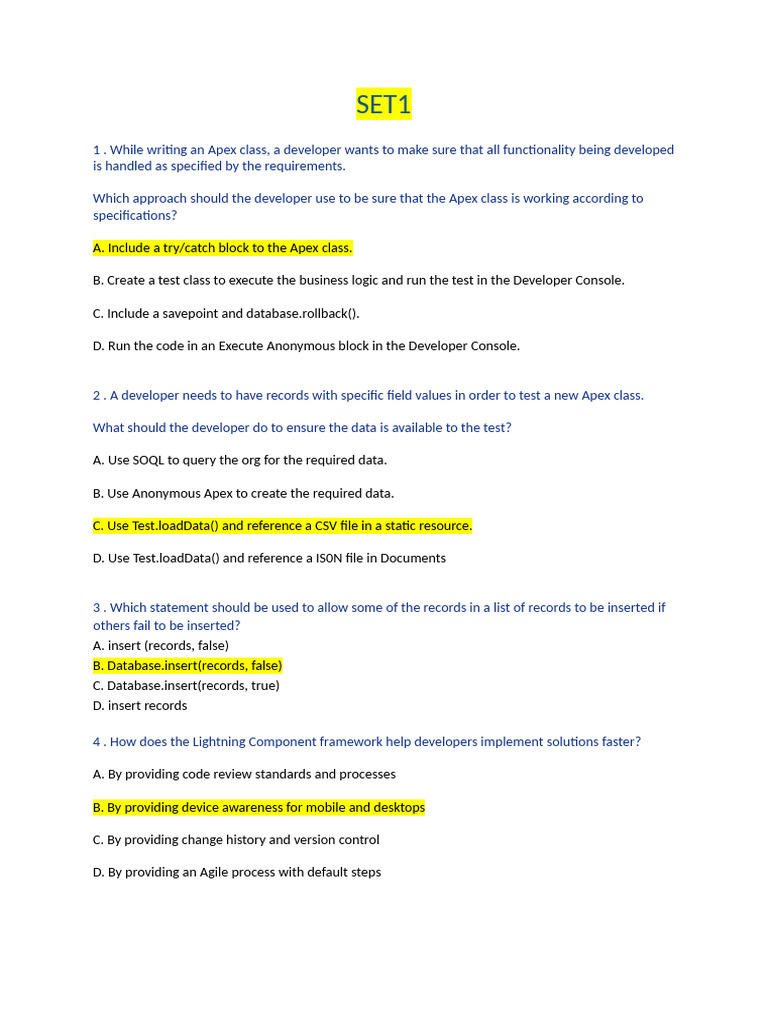 1 . While writing an Apex class, a developer wants to make sure that all functionality being developed