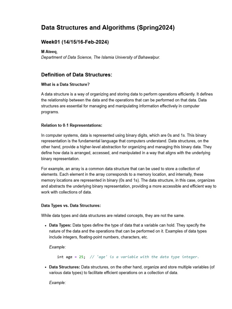 Data Structures: Data structures, on the other hand, organize and store multiple variables (of