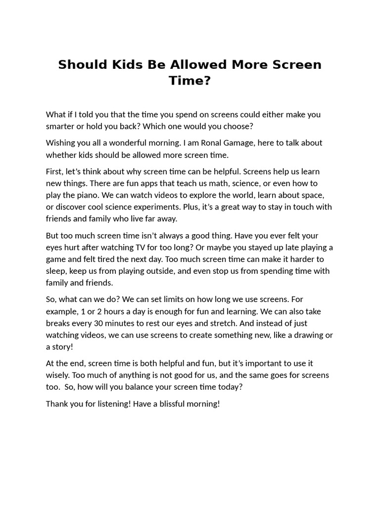whether kids should be allowed more screen time.