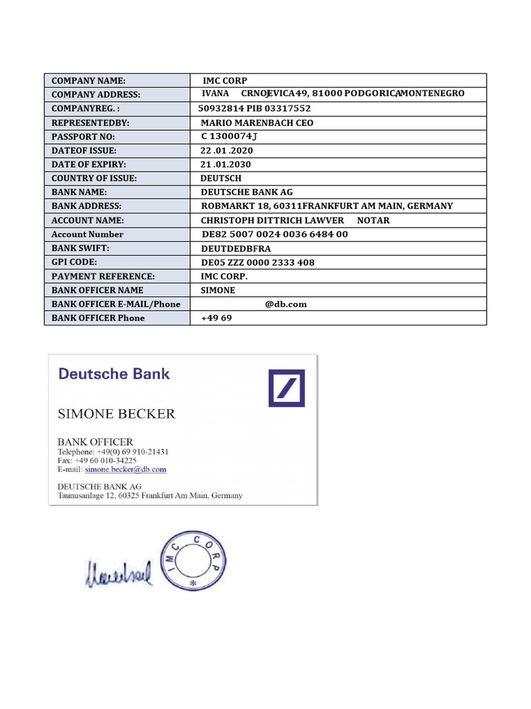 BANK OFFICER E-MAIL/Phone simone.becker@db.com