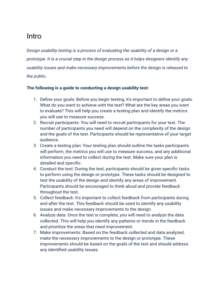 The following is a guide to conducting a design usability test:
