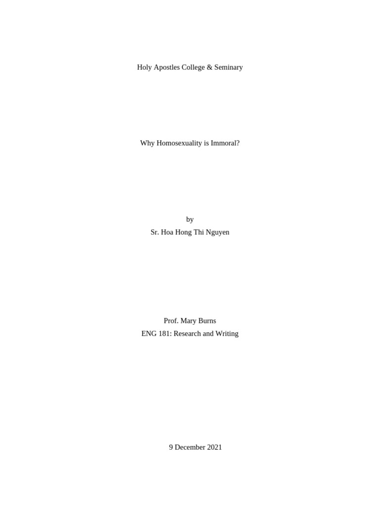 then, the causes of homosexuality's immorality, and finally the Church’s response to the issue of