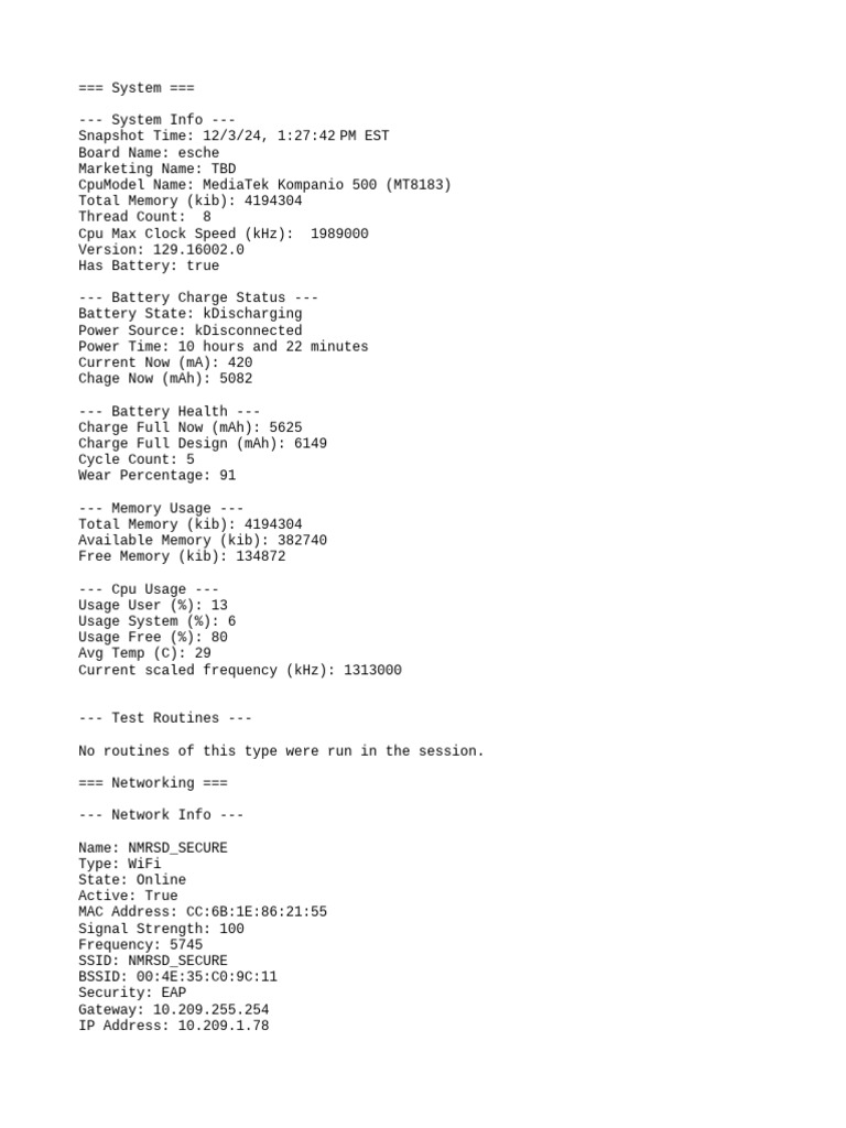 CpuModel Name: MediaTek Kompanio 500 (MT8183)
