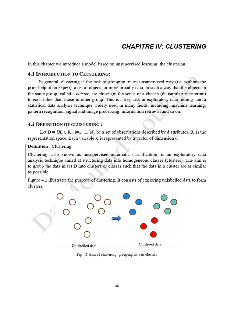 Figure 4.1 illustrates the purpose of clustering. It consists of exploring unlabelled data to form