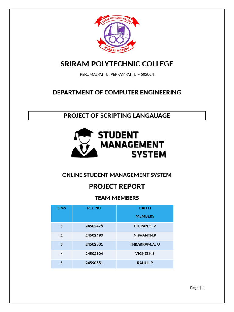 We would like to express our appreciation to SRI RAM POLYTECHNIC
