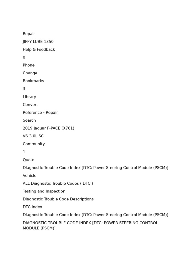 Diagnostic Trouble Code Index [DTC: Power Steering Control Module (PSCM)]