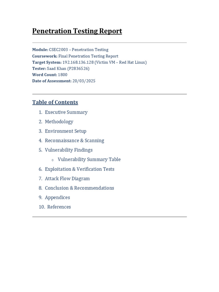 Target System: 192.168.136.128 (Victim VM – Red Hat Linux)