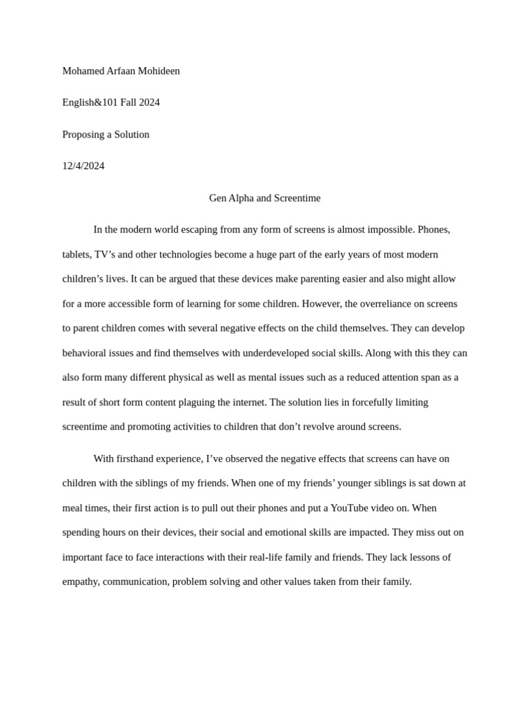 In conclusion, excessive screentime in the youth today is an unavoidable issue which