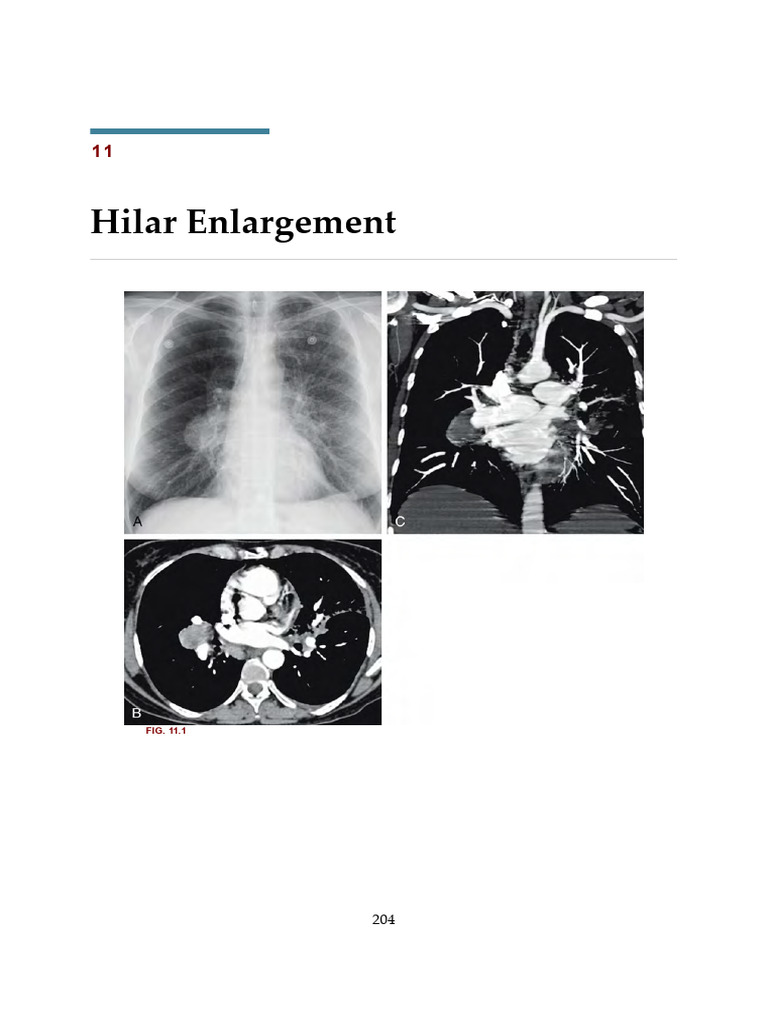 determine whether the abnormal hilum is the result of an enlarged vascular structure or a mass (Chart 11.1). This