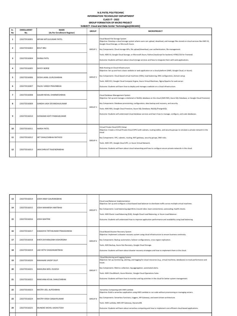 SUBJECT: Cloud and Data Center Technologies(4361602)