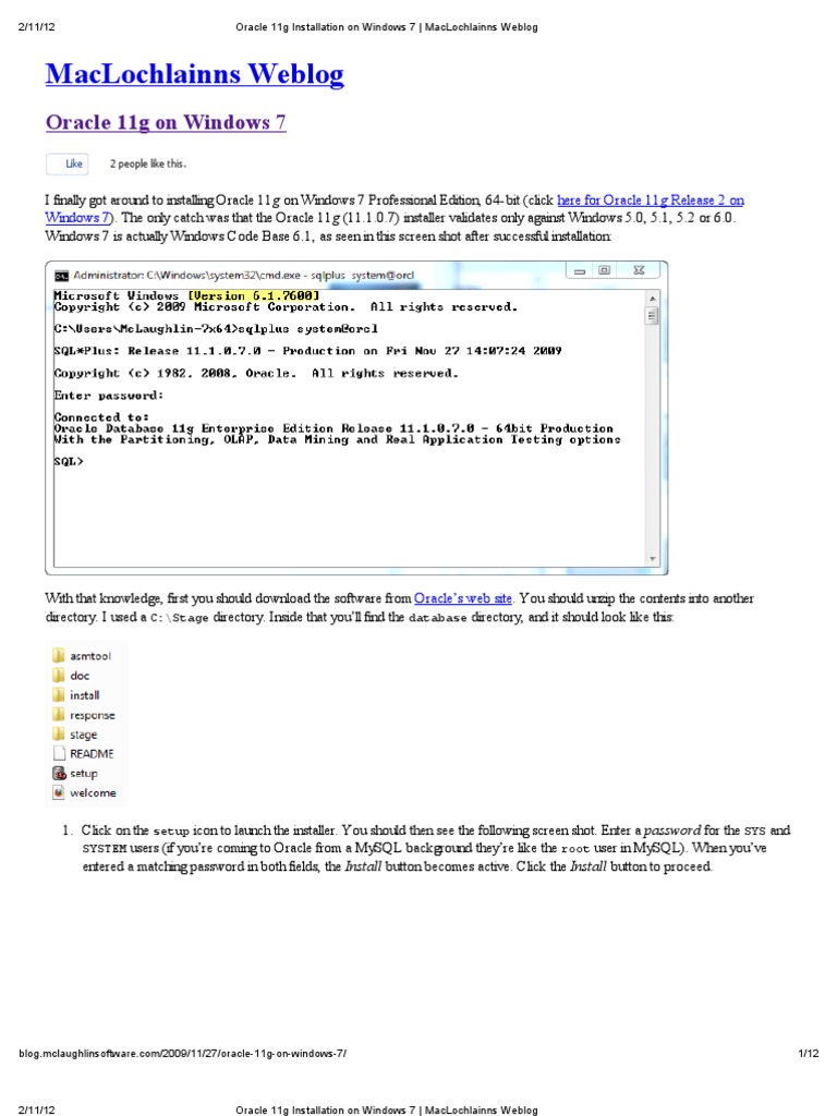 Oracle 11g Installation on Windows 7 MacLochlainns Weblog