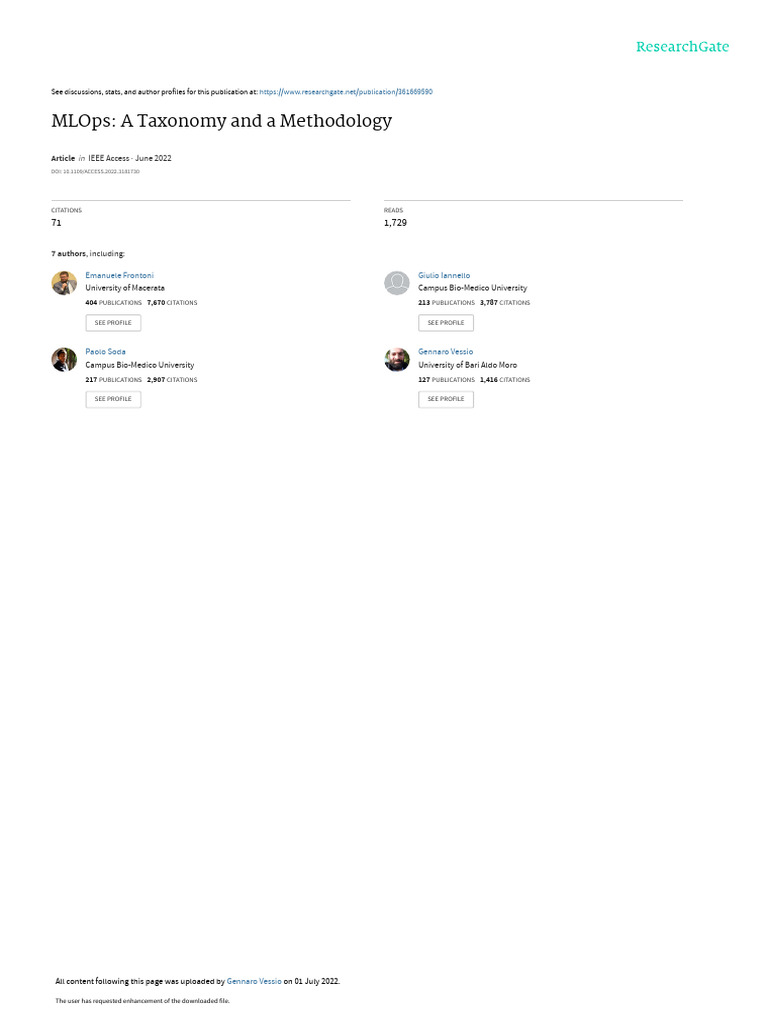 M. Testi et al.: MLOps: A Taxonomy and a Methodology