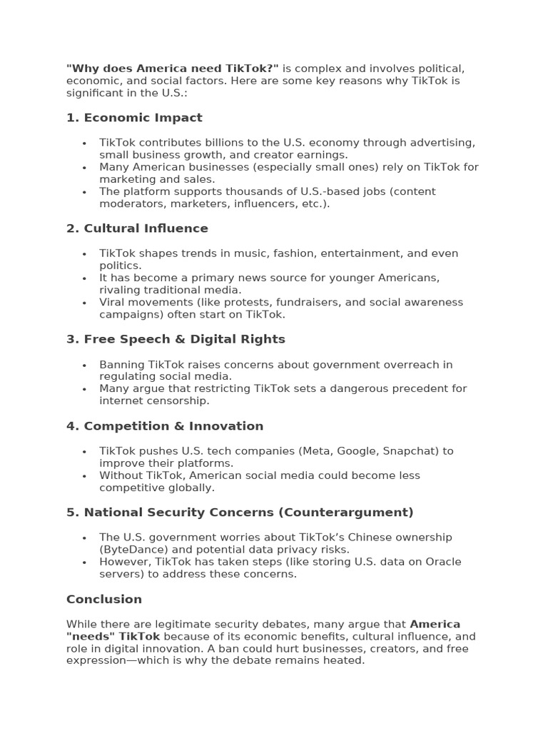 "needs" TikTok because of its economic benefits, cultural influence, and