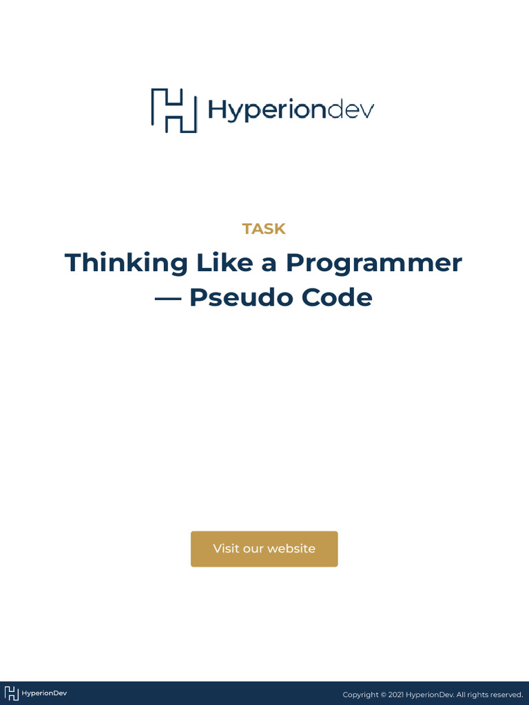 This task will introduce the concept of pseudo code. Although pseudo code is not a